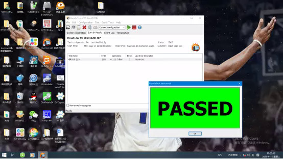 把5块七彩虹SL300(外壳已拆)嵌入测试平台,分区后,打开PassMark BurnInTest软件选择,然后进行满载连续读写测试,同时启动高低温试验箱程序。BurnInTest可以对硬件进行全面的检测,帮助检验超频后系统的稳定性,并发现潜在隐患。