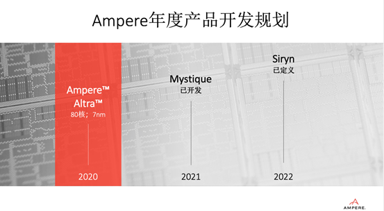 成立后的Ampere很快就推出了产品:基于ARM v8.0架构的32核芯片eMAG 芯片,采用TSMC 台积电16FF +工艺构建,运行频率为3.3 GHz。该芯片已经交付了联想等一批客户。在一年半之后,2020年3月,Ampere的最新产品Altra诞生了,这款芯片被定义为世界上首款“云原生处理器”。