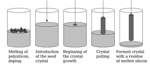在固体材料中,有一种特殊的晶体结构──单晶(Monocrystalline)。它具有原子一个接着一个紧密排列在一起的特性,可以形成一个平整的原子表层。因此,采用单晶做成晶圆,便可以满足以上的需求。然而,该如何产生这样的材料呢,主要有二个步骤,分别为纯化以及拉晶,之后便能完成这样的材料。
