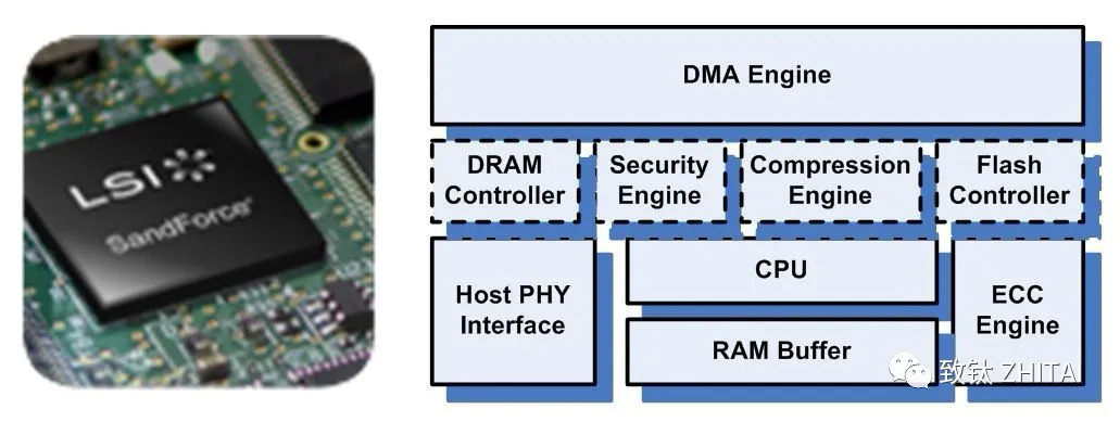 不同的主控之间能力相差非常大,在数据处理能力、算法,对闪存芯片的读取写入控制上会有非常大的不同,直接会导致固态硬盘产品在性能上差距高达数十倍。一般主控具有以下功能模块: