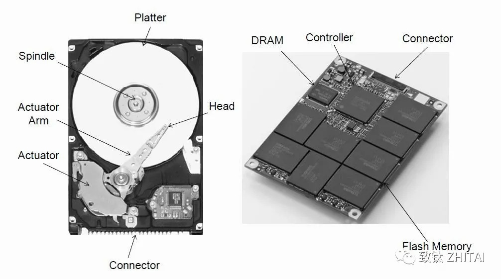 上图是HDD和SSD产品组成对比图