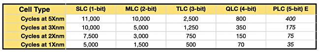 NAND位记录质量随单元数的增加而降低。QLC NAND与TLC NAND不同。如上所述,读取和写入位需要更长的时间,并且QLC单元的寿命比TLC单元的寿命短。PLC使情况再次恶化。