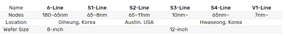 随着V1生产线的投入使用,三星目前在韩国和美国共有6条晶圆代工生产线,其中包括5条12英寸生产线和1条8英寸生产线。