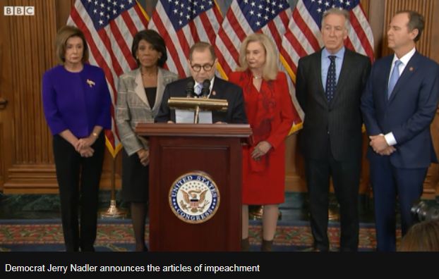 众议院司法委员会主席杰里·纳德勒公布弹劾条款 BBC视频截图