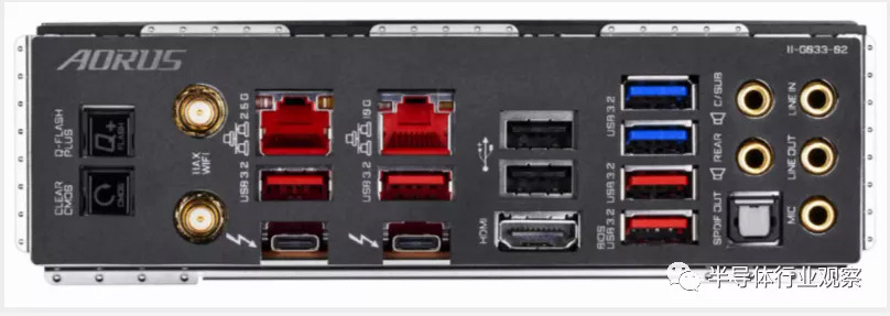 新系统在此基础上有两个版本:Gen 3.2 1x2和2x2,其中两组数据线并行使用。有了这么多不同的规格和速度,您会认为会有一个固定的标准来帮助识别他们。但我们都错了——看看Gigabyte主板的背板: