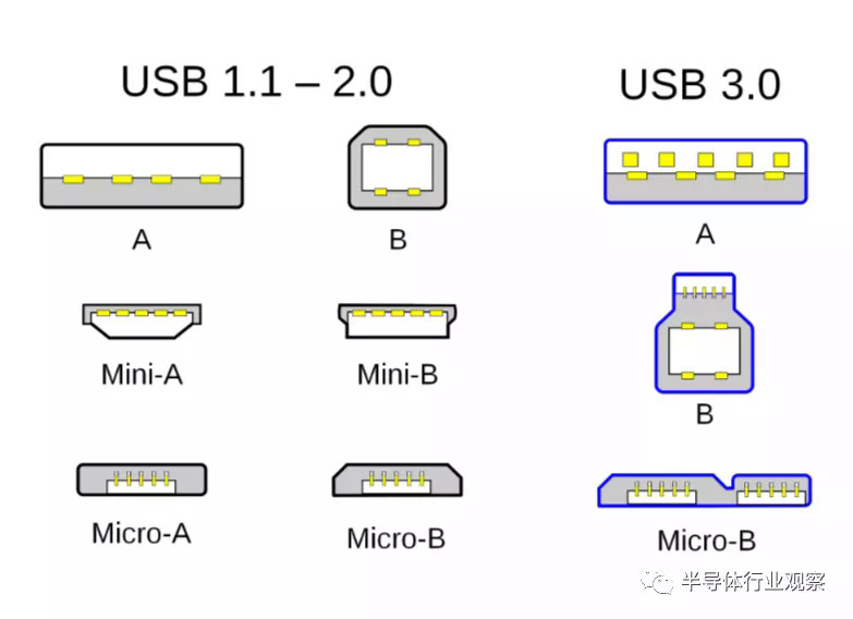 所有这些变化都是为了追求更多的性能(您可以清楚地看到USB 3.0中的额外数据引脚),通过不断增加产品种类来丰富整个体系,即众所周知的USB Implementers Forum(USB-IF)。