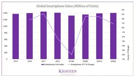 由于智能手机市场疲软,行业结构转型,导致高通骁龙芯片在过去5年的出货量平均下降了8%,根据Gartner报告称,2019年智能手机更换率已降至33.4%的历史最低点,并预计未来几年会进一步下降。