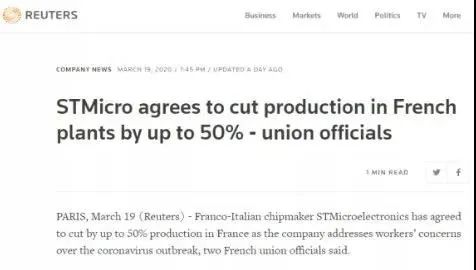 目前来看,意法半导体的主要晶圆厂都在重灾区,不过,意法在之前将部分晶圆订单外包给台积电和三星,如今亚洲地区疫情已经趋于稳定,也算是好消息。