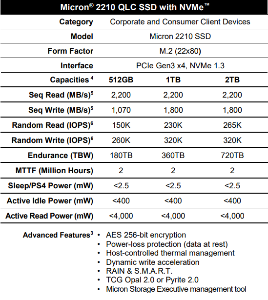 镁光是最早推出QLC闪存硬盘的厂商,不过之前主要是用于企业级市场,消费级市场反而慢了2年,这次在2210系列上才首次使用QLC闪存,替代之前的2200系列的TLC闪存。
