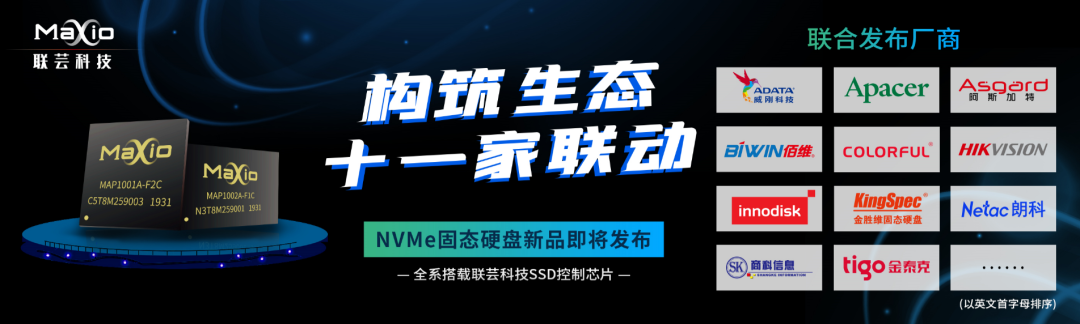 今年6月,联芸科技联合十一家一线SSD品牌,面向全球发布了两款NVMe主控芯片及解决方案。产品全面覆盖工业控制SSD、高端竞技应用SSD、笔电PC专用SSD等众多应用场景。