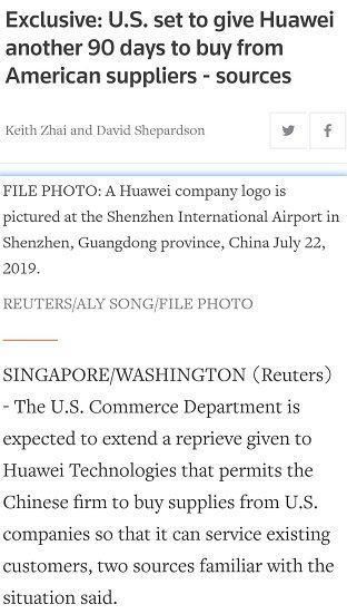 再说到8月19日,华为的临时许可即将到期,禁令将全面执行,此时传来了美国将再次延长华为在美国的“临时许可”有效期的消息,这次延长期限再次长达90天。