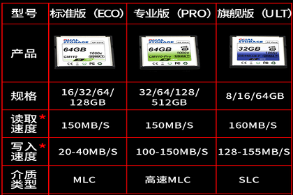尖货到!华储发表了三款1000x“三高”CF存储卡 数码存储厂商华储今天发布了新一代三款高速CF卡存储卡,继续进攻国内市场。这三款CF存储卡,性能均在1000x以上,均为影视存储领域而专门设计,主打高速、高品质,包括旗舰版(ULT系列)、专业版(Pro系列)和标准版(ECO系列)。