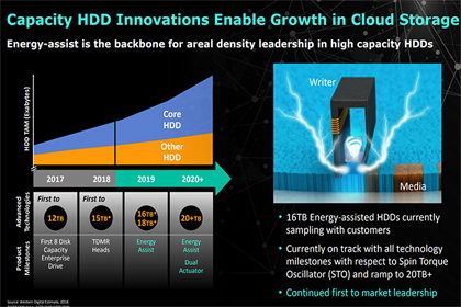 西数16TB MAMR硬盘已出样,2020年20TB硬盘不是梦 尽管NAND闪存降价使得HDD面临更大的压力,而SSD硬盘的优异性能也是HDD硬盘追不上的,但在数据中心市场上,HDD硬盘依然是不可或缺的,未来一段时间存储数据的主力依然是HDD硬盘。进入到2019年,HDD硬盘还有一次技术大升级的机会,那就是HAMR热磁辅助记录技术,希捷已经出样16TB容量的HAMR硬盘了,今年正式商业化,容量可达18TB。