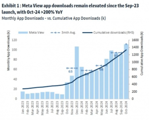 Meta智能眼镜火爆 Meta智能眼镜相关应用的下载量呈现爆炸式增长。
