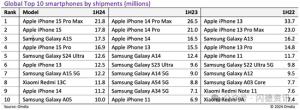 上半年全球10大畅销手机排行榜 Omdia发布2024年上半年全球十大畅销手机排行榜