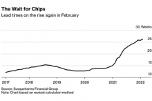 芯片交期再度拉长,买家平均要等半年以上 ,2月份全球芯片交付时间(指从下单到交货的前置时间)环比增加了3天,达到26.2周,买家平均要等半年以上,创该机构2017年开始跟踪数据以来的最长纪录