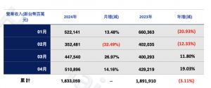 鸿海4月营收年增近20%,PC终端产品强劲成长 鸿海公布4月营收,达新台币5108.96亿元,月增14.16%、年增19.03%