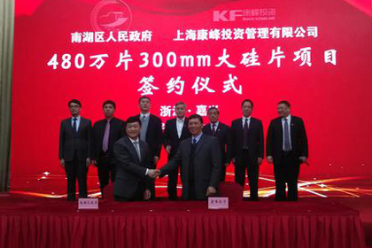 年产480万片300mm大硅片项目落户嘉兴,总投资110亿元 日前,浙江省嘉兴市南湖区人民政府与上海康峰投资管理有限公司签署投资协议和定向基金协议。由上海康峰投资管理有限公司投资的年产480万片300mm大硅片项目落户嘉兴科技城,这也是嘉兴科技城今年迎来的首个百亿投资产业项目。