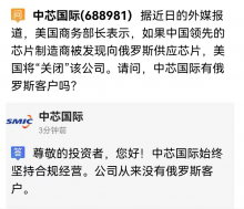 中芯国际违规供货俄罗斯?「我没有、别瞎说」 针对「公司是否有俄罗斯客户」的相关问题,中芯国际在投资者互动平台表示,中芯国际始终坚持合规经营。公司从来没有俄罗斯客户。