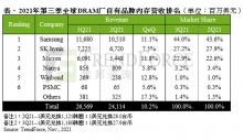 据市场调研机构集邦咨询(TrendForce)17日发布的数据,韩国三星电子2021年第三季度在全球动态随机存取存储器(DRAM)市场上的份额环比增加0.4个百分点,为44%,稳居世界第一。