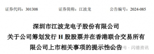 江波龙发布公告称,拟发行H股股票并申请在港交所主板挂牌上市。