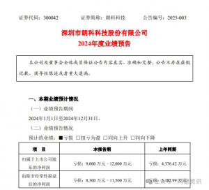 近日,朗科科技发布业绩预告,预计2023年全年扣非后净利润亏损4561.74万元至5868.67万元,同比上年减204.1%至233.92%。