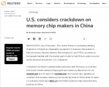 根据路透社援引四位知情人士消息称,美国正考虑限制向中国存储器制造商出口美国的芯片制造设备,希望借此来限制中国的半导体产业发展。
