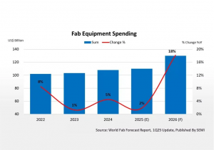 预期今年晶圆厂设备支出将会高达1100亿美元,成长2%,中国、韩国和中国台湾位居前三。