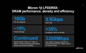 11月1日,美光宣布正向智能手机制造商和芯片组合作伙伴送样其1β DRAM技术产品,并准备实现批量生产。美光首先将其用于LPDDR5X移动内存,该内存提供8.5Gpbs的最高速度。